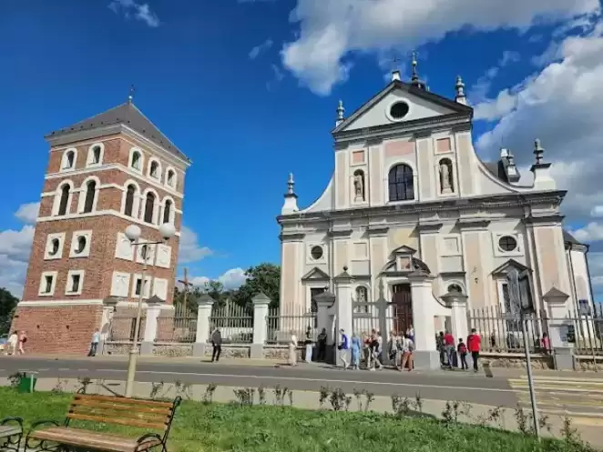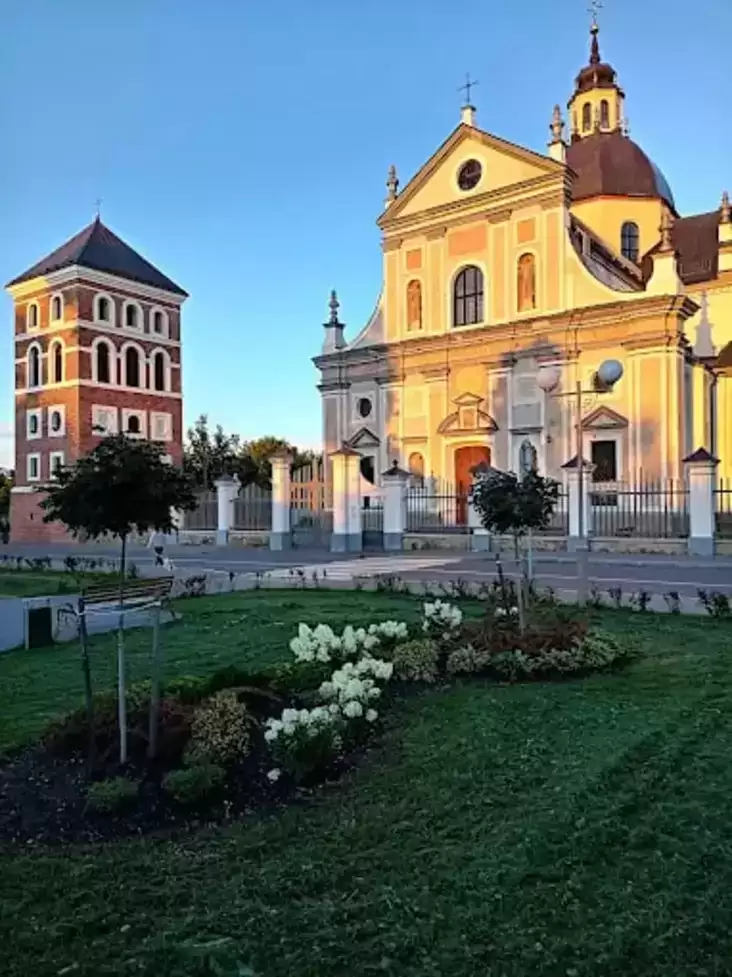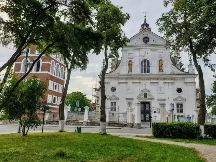 Сквер после завершения реставрации костела. Деревья украшали и дополняли богатую барочную архитектуру храма. Фото: Wikimedia Commons