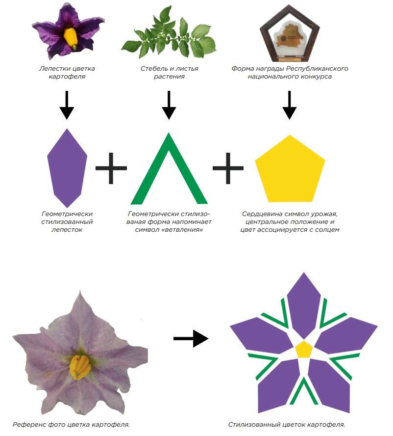В качестве ключевого графического образа выбрали цветок картофеля. По мнению разработчиков логотипа, он сочетает в себе узнаваемость, культурную значимость и уникальность национальной идентичности.