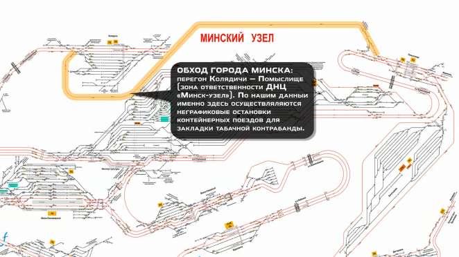 Этот обход находится в зоне ответственности ДНЦ «Минск-узел» и считается одним из наиболее благоприятных для контрабандистов на Минском узле.