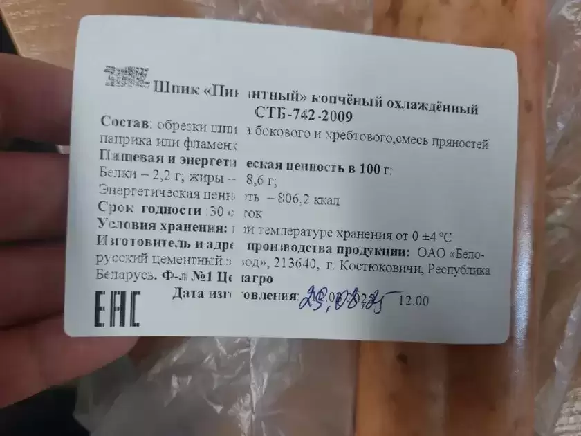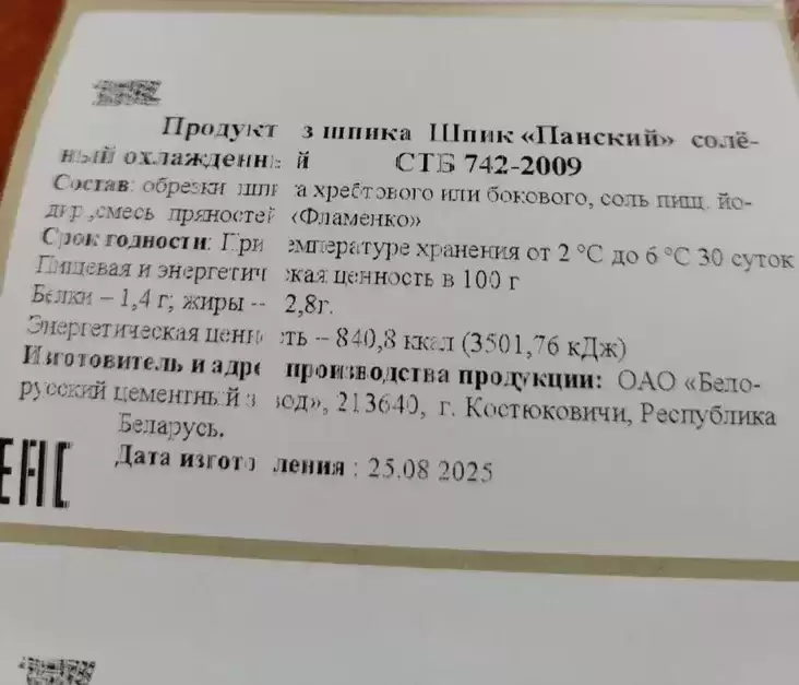 Госстандарт включил в список опасной продукции два вида шпика — соленый «Панский» и копченый «Пикантный», произведенные филиалом №1 «Цемагро» ОАО «Белорусский цементный завод» в Костюковичах. Вероятно, речь идет об аграрном подразделении этого предприятия.