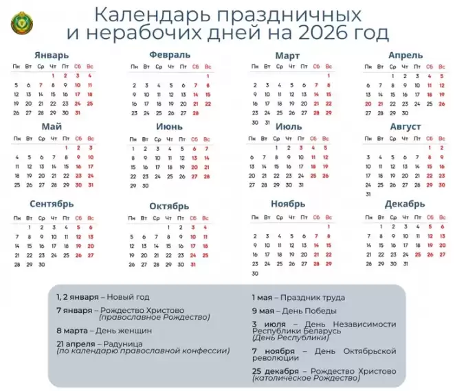 Во вторник в Беларуси сокращенный выходной день, поскольку в среду, 7 января, православное Рождество.