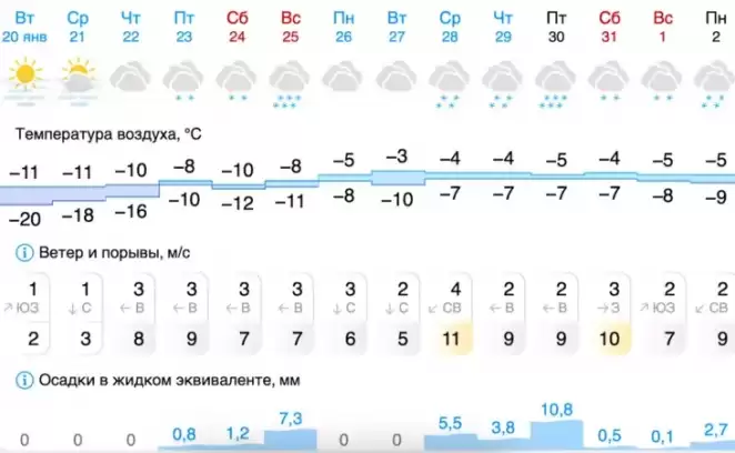 В среду будет пока холодно. Ночью -15…-21°С, в отдельных районах воздух будет охлаждаться до -25°С; максимальная днем -5..-11°С, местами до -14°С.