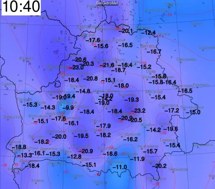 Белорусский же Оймякон и Гренландия этой зимой является Кличев. Там было минус 23,2°С, и так уже несколько ночей подряд.