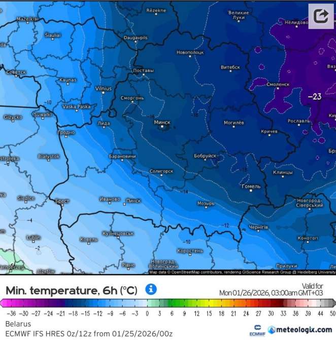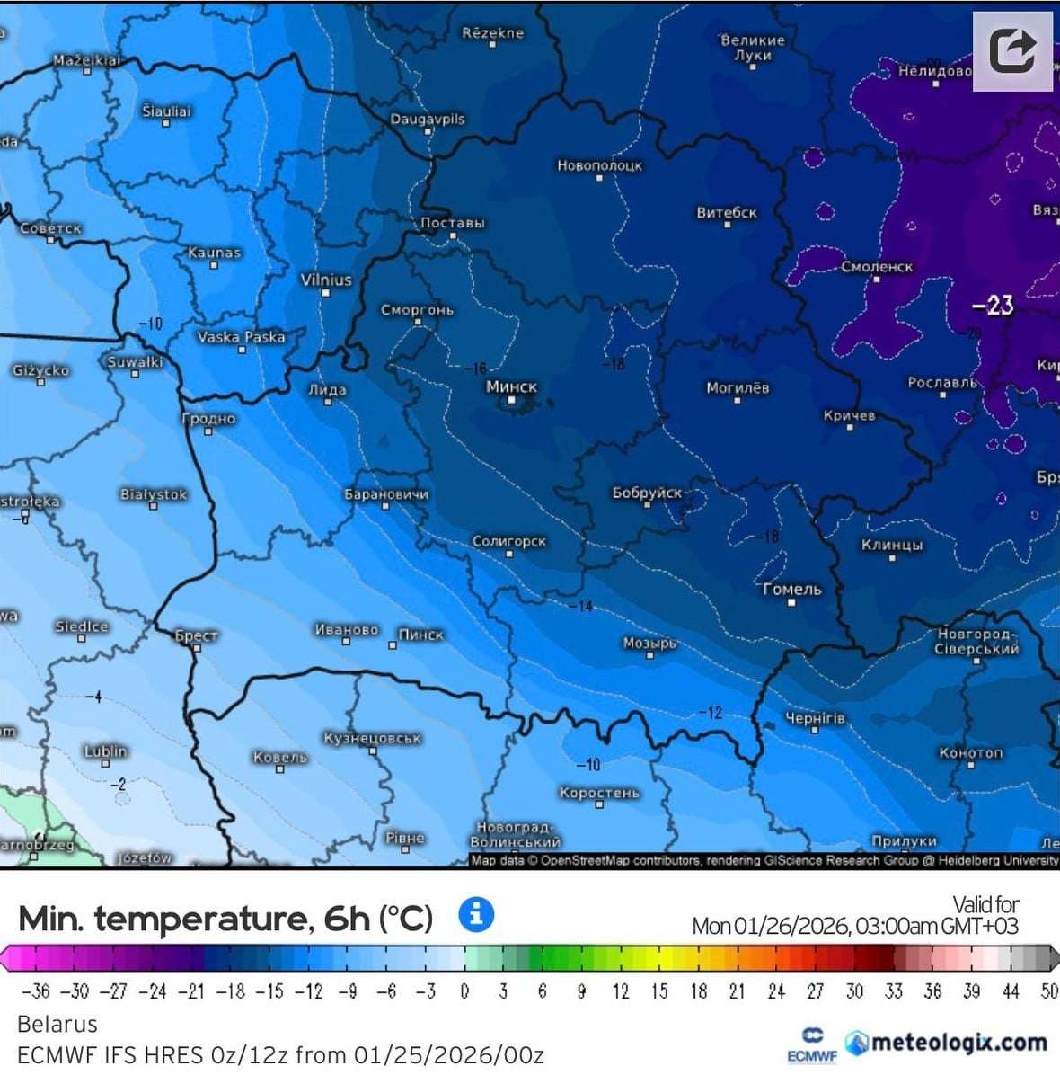 Ночью погода будет контрастной. По данным синоптиков, на северо-востоке ударит до -22°С, а на юго-западе – около -5°С. Днём начнет поступать теплый воздух с юга Европы, и станет заметно мягче: -1…−7°С, по юго-западу возможны 0…+2 °С. Северо-восток, правда, так быстро не оттает – там до -9 °С.