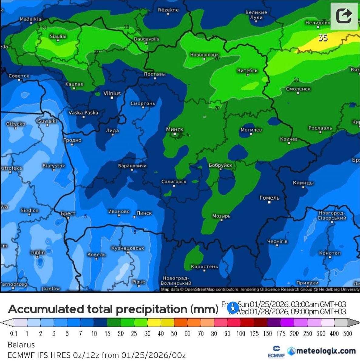 Этот процесс растянется примерно на двое суток. К концу среды, 28 января, на востоке страны может выпасть 15-25 мм осадков. На юго-востоке большая их часть придется на дождь – при слабом «минусе». Гололед там может нарасти до 10 мм. Это уже серьёзно: возможны обрывы проводов и падение веток.