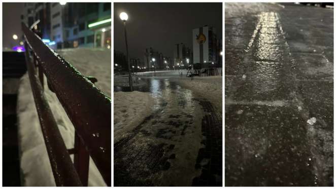 «Сегодня особенно опасный день для хождения по улицам в Минске. Идет дождь и покрывает тротуары ледяной коркой, по которой еще и струится вода тонким слоем. Берегите себя», – призвал житель столицы.