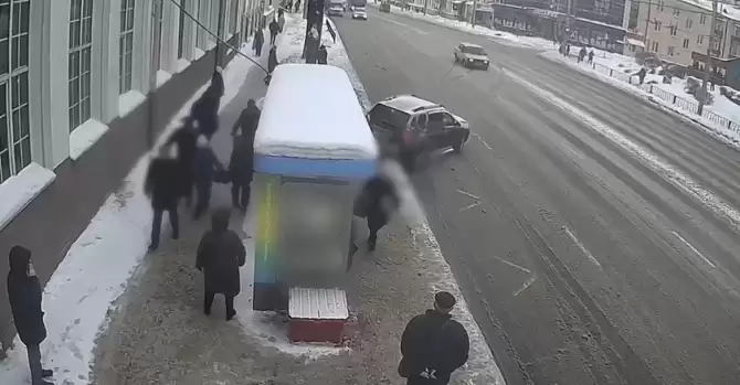 Инспекторы с использованием Республиканской системы мониторинга общественной безопасности выявили нарушение, совершенное водителем Renault, который не учел погодные условия при выборе скорости движения, в результате чего автомобиль вошел в неуправляемый занос и вылетел на остановку общественного транспорта «Коминтерн», где в этот момент находились люди.