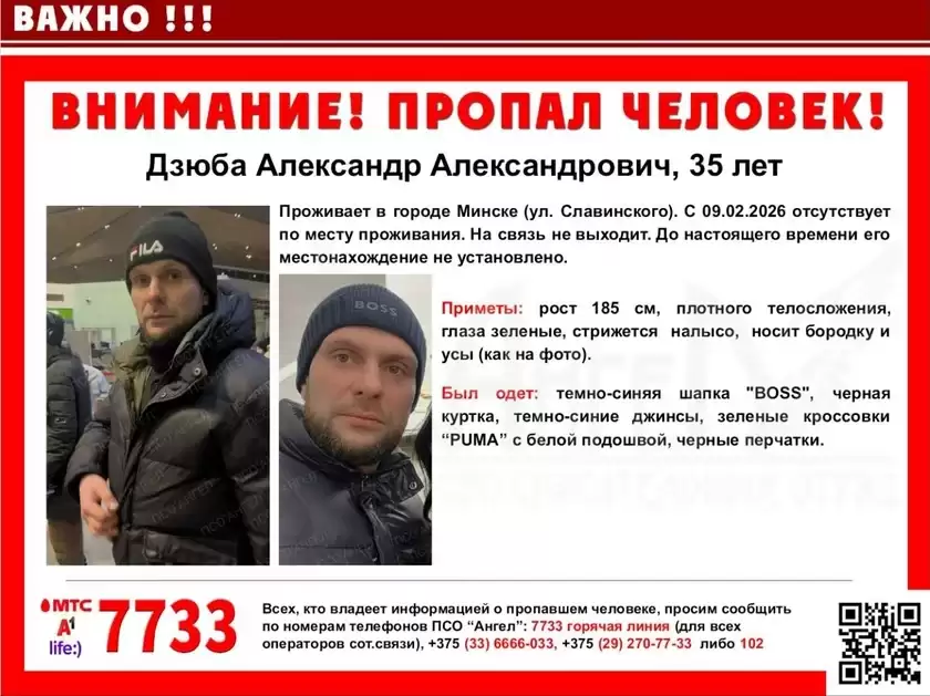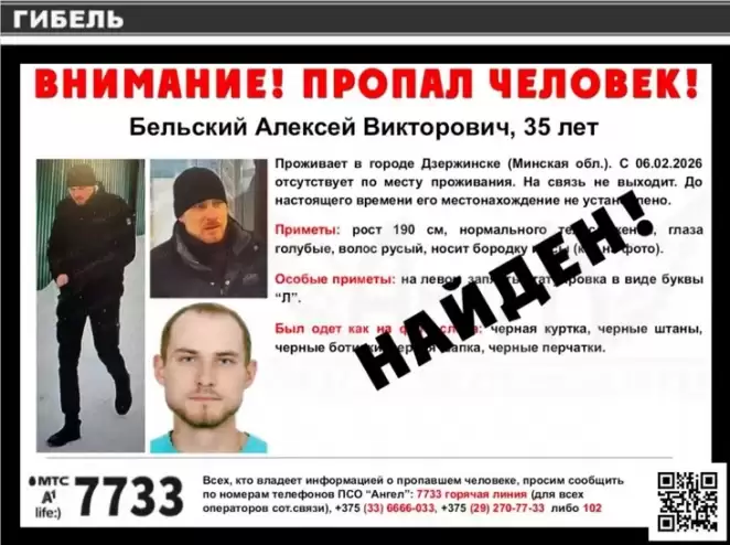 11 и 13 февраля поисковый отряд «Ангел» сообщил, что уже несколько дней нет связи с двумя 35‑летними мужчинами: жителем Дзержинска Алексеем Бельским и минчанином Александром Дзюбой.