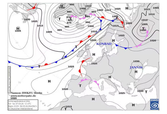 Тем не менее, уже в воскресенье, 8 марта, по данным авторов тематического Telegram-канала о погоде «Метеовайб», скандинавский антициклон «Яннис», который сегодня обеспечил белорусов солнечной погодкой, начнет смещаться к Черному морю, а на смену ему придет антициклон «Конрад», который и будет определять погоду в стране в течение всей следующей недели.