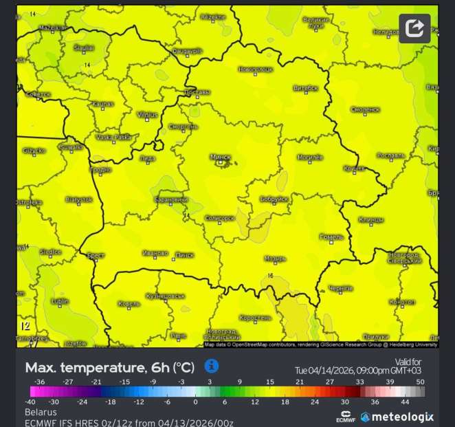 В среду, 15 апреля, днем столбик термометра покажет +10..+14°С, по западу – до +17°С. «К субботе вполне вероятен выход на +20°С», – отметили авторы Telegram-канала Nadvorie.