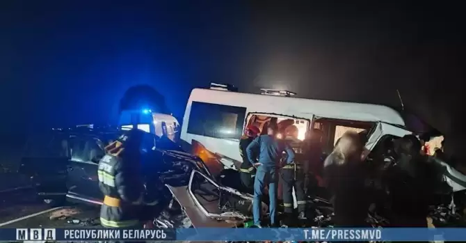 46‑летний водитель на микроавтобусе Mercedes выполнял рейс Минск—Мозырь. Он пошел на обгон, зацепил полуприцеп трактора, после чего микроавтобус выехал на встречную полосу, где столкнулся с автомобилем Volkswagen.