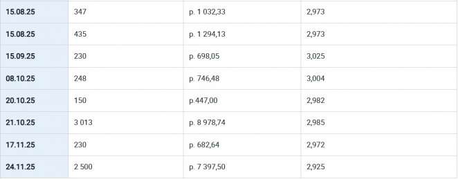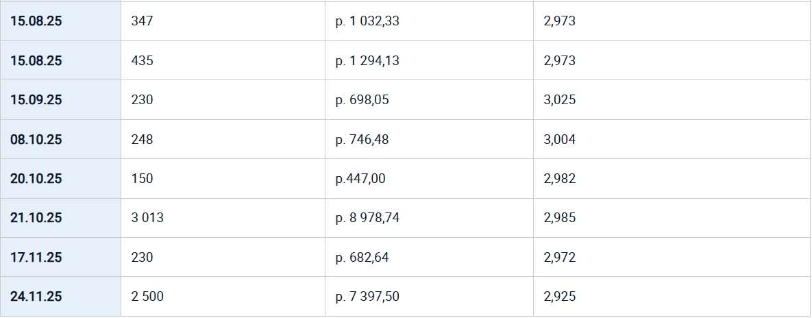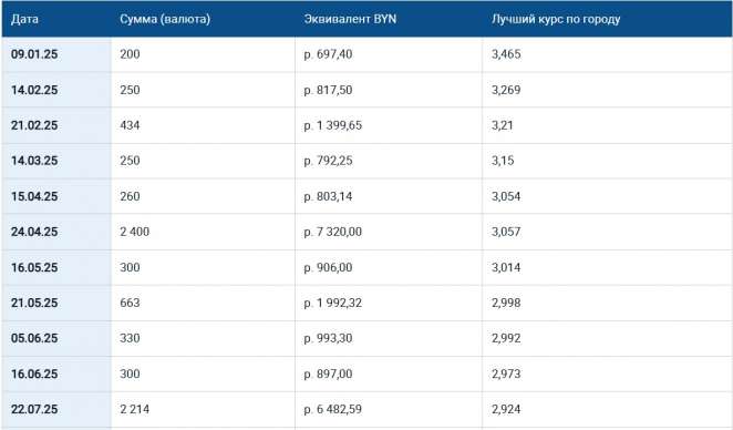 Вот личная история покупок доллара в 2025 году. Первая покупка в январе — по 3,487. Последняя в ноябре — уже по 2,959.