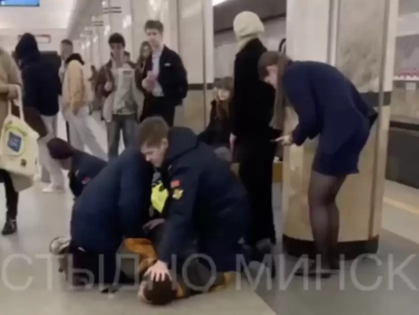 В соцсетях появилось видео из минского метро, где охранники метрополитена скручивают пассажира на перроне станции «Каменная Горка». Некоторые очевидцы описывали, что мужчина выглядел пьяным и перед этим бегал по вагонам, пытался драться с охраной метро и даже ударил свою маленькую дочь.