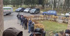 «Стоим несколько часов». В Новополоцке возле поликлиники очередь людей с температурой