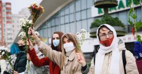 Возле Комаровского рынка в Минске выстроилась женская цепь солидарности