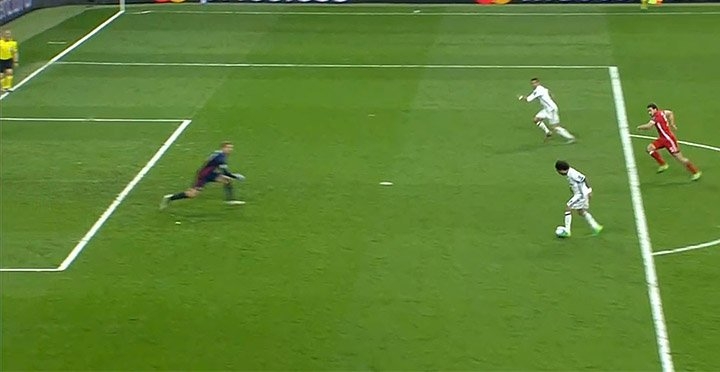 Эпизод произошел на 109-й минуте, когда голкипер оступился, а форвард мадридцев Криштиану Роналду забивал из офсайда третий гол (3:2).