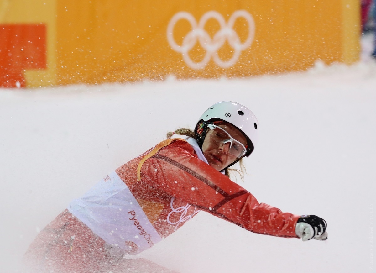 Белорусская фристайлистка в финале заявила прыжок сложностью 3,800, выполнила его великолепно, но немного ошиблась на приземлении.