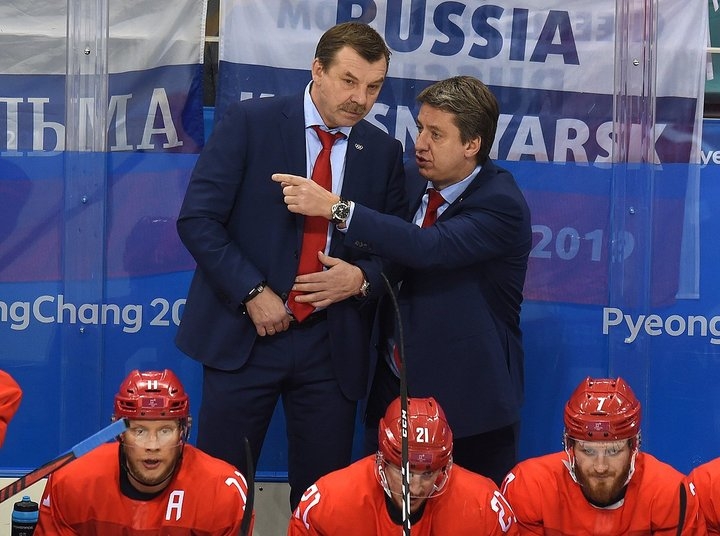 Олег Знарок и его помощник Харий Витолиньш. Фото: twitter.com/russiahockey