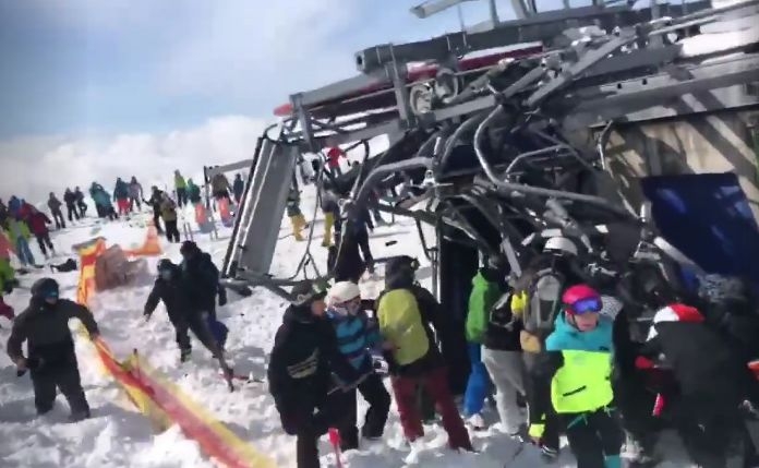 На горнолыжном курорте Грузии сломалась канатная дорога. Людей выкидывало из сидений