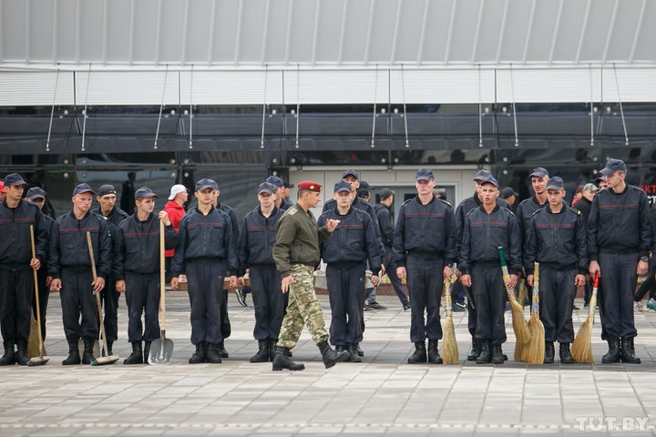 После шести лет реконструкции в четверг, 21 июня, откроется минский стадион «Динамо». Не исключено, что в торжественной церемонии примет участие и Александр Лукашенко. Накануне отмывать спортивный объект от строительной пыли согнали воспитателей, учащихся колледжей и курсантов МВД.