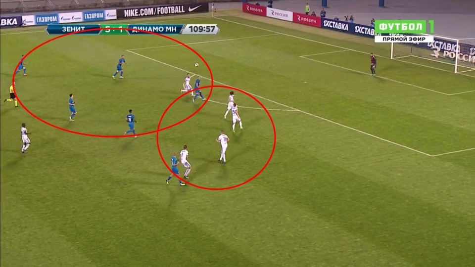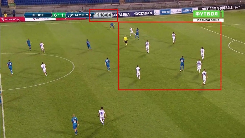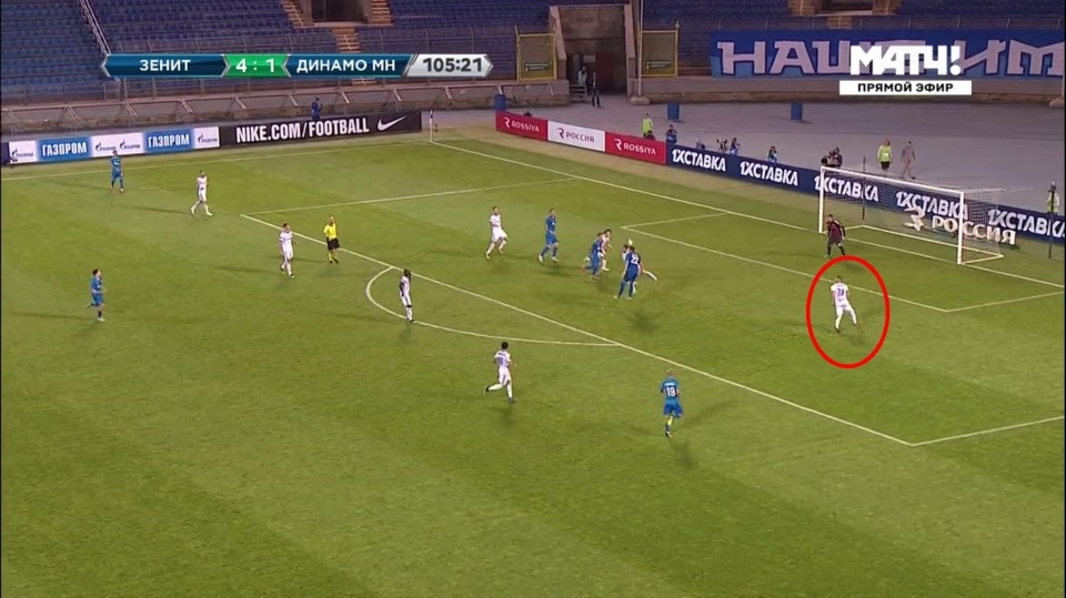 Катастрофа для минчан. Около 3 минут до конца, «гооол, надо гооол, надо гооооол, надо гооол!» Но «Динамо» удивляет неохотой атаковать. Еще 5 минут назад при надобности уйти в глухую оборону они защищались либо 1 в 1, либо вообще оставляли по 2 игрока без присмотра в штрафной. Сейчас же нужно рисковать, но минчане решают иначе и втроём опекают Заболотного без мяча. Ему, наверняка, было приятно.