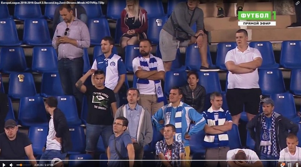 Продолжаем с образцовой обороной от минчан. 1 гол до вылета из Лиги Европы. Играем в большинстве, между прочим. У лазурных в атаке шестеро против пятерых минчан. Какая стройность оборонительной линии, не находите?