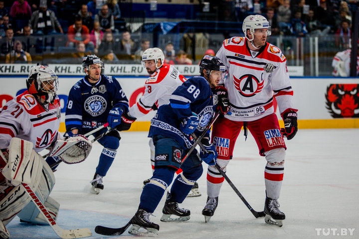 Встреча прошла с существенным преимуществом хозяев, которые выиграли по броскам 30:13, но вновь отличный матч провел вратарь «Динамо» Юнас Энрот. Уже в первом периоде шведский голкипер отразил 15 бросков, но счет открыли все-таки «зубры». Андрей Костицын воспользовался ошибкой Алексея Василевского и реализовал выход один на один с Якубом Коваржем.