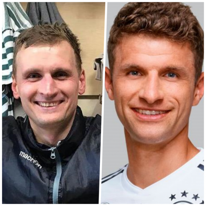 Кстати, приглядитесь к фотографии внимательнее – там есть и другие двойники суперзвезд. Кажется, сидящий в центре защитник Кирилл Павлючек – это вылитый Томас Мюллер…