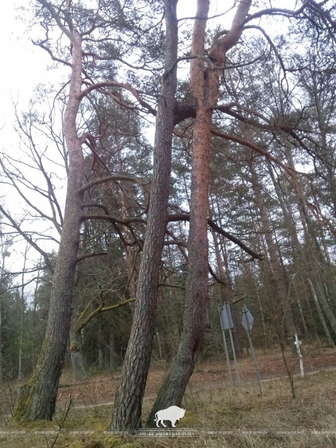 На территории Национального парка «Беловежская пуща» вблизи деревни Белая обнаружили редкое природное явление. Две сосны, которые растут на расстоянии около полуметра друг от друга, срослись между собой.
