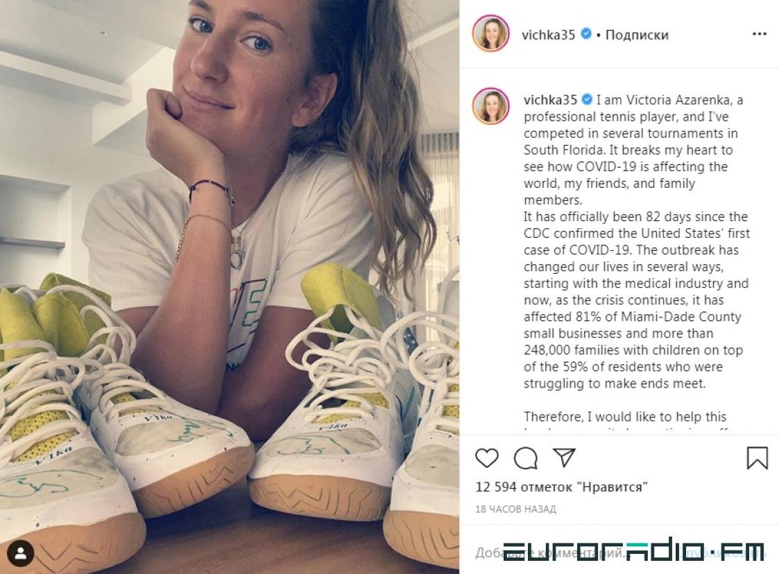 Азаренко продаёт свои кроссовки — деньги пойдут на борьбу с COVID-19