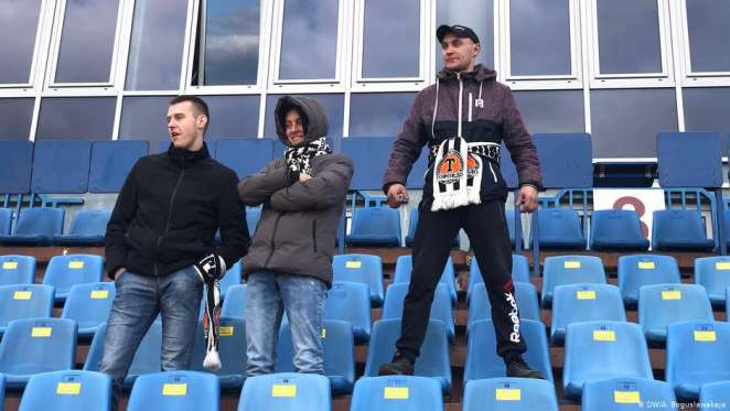 О демарше фанатов зрители на трибунах жодинского стадиона знают. "Я понимаю, почему фанаты приняли такое решение, но для меня смотреть футбол на трибуне - это традиция", - пояснил DW жодинец Станислав, который пришел на матч с внуком.