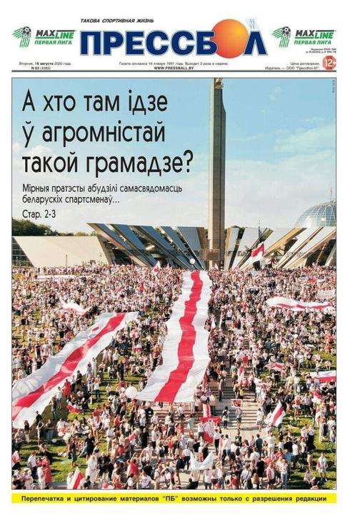 Первая полоса свежего номера «Прессбола». Источник: pressball.by