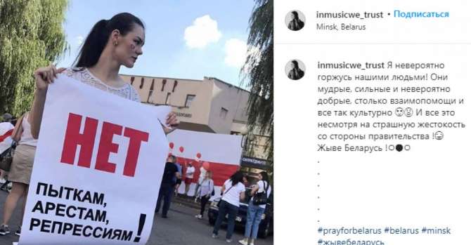 «Я невероятно горжусь нашими людьми! Они мудрые, сильные и невероятно добрые, столько взаимопомощи и всё так культурно. И всё это несмотря на страшную жестокость со стороны правительства! Жыве Беларусь!».