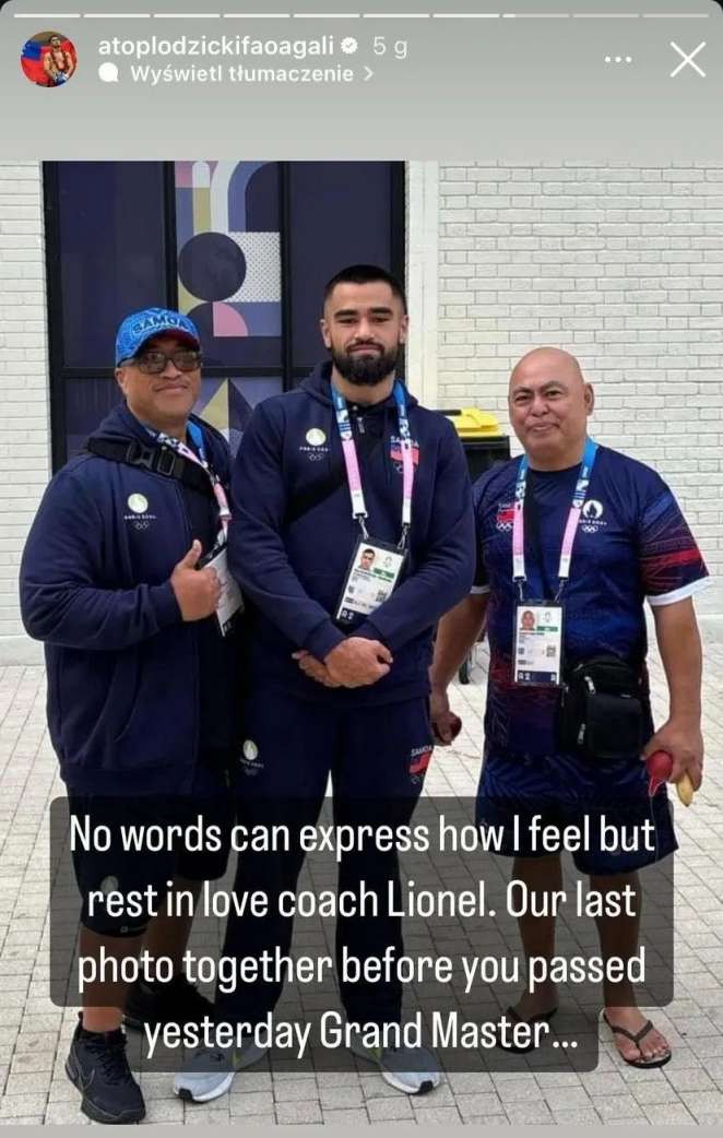 Фатупайто, которому, было 60 лет, должен был тренировать этнического поляка Ато Плодзицки-Фаоагали – единственного самоанского боксера, принимающего участие в Олимпиаде-2024. Двукратный чемпион Тихоокеанских игр встретится с бельгийцем Виктором Шельстрате в воскресенье.