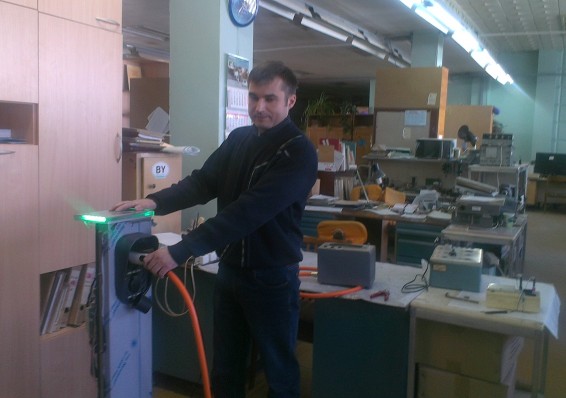 «Разрабатывая прототип, мы взяли лучшее из зарубежных аналогов, – рассказал «Ежедневнику» руководитель сектора разработки ОАО «Витязь» Тарас Климченко. – Оптимизировали нашу станцию и процесс подключения электромобиля. Для включения достаточно подсоединить кабель к автомобилю с одной стороны и к станции – с другой, и надо активировать устройство, это можно сделать с помощью RFID-карты, SMS-сообщения, или мобильного приложения, которое устанавливается на ОС Android. Наши станции с переменным трехфазным током – что наиболее распространенный вариант в мире. Время зарядки электромобиля составляет около 4 часов. При изготовлении станции используются белорусские комплектующие. Наше предприятие сделало уникальный дизайн корпусных деталей и программную начинку».
