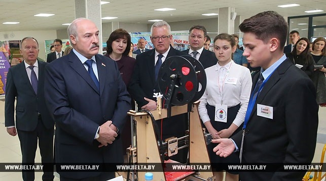 На выставке достижений учащиеся из различных регионов Беларуси рассказали главе государства о реализуемых в их школах и гимназиях проектах, продемонстрировали собственные разработки и изобретения.
