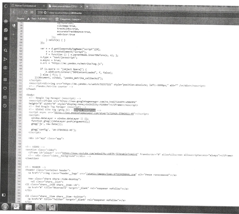 После чего предоставили суду две страницы кода, доказывающего, что сайт подключен к сервисам «Google.Аналитика» и «Яндекс.Метрика»:
