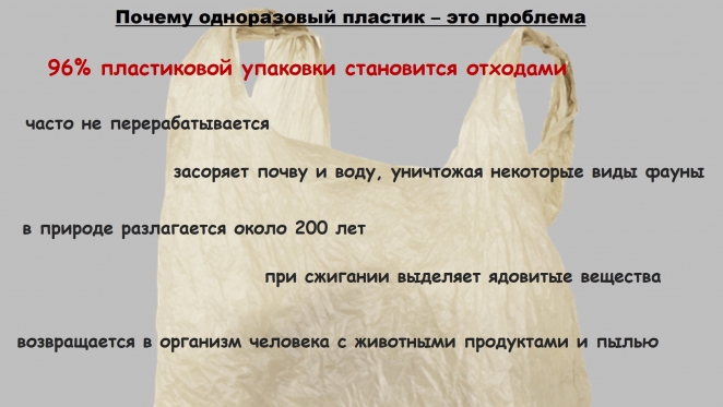 Пластик уже успел нанести огромный ущерб природе. Его остатки находят в желудках морских обитателей, им загрязнены реки и почва, он проходит всю пищевую цепочку и попадает в организм человека. Мелкие частицы пластика могут попадать в еду напрямую из неправильно использованной упаковки.