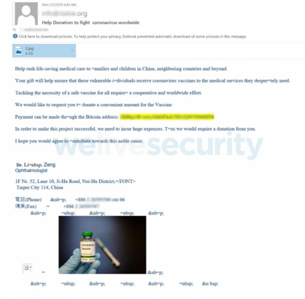 Злоумышленники также прибегают к фейковым благотворительным акциям. Создаются рассылки с призывом отправить пожертвование на поиск вакцины от коронавируса для детей в Китае.