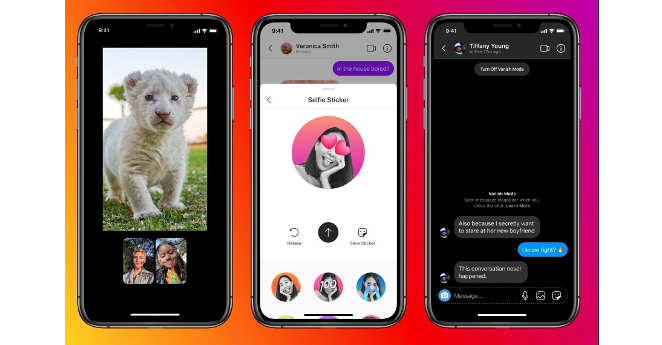 Facebook анонсировал ряд новых функций: возможность настройки приватности, совместный просмотр видео из IGTV в режиме звонка, режим «исчезновения» сообщений после их просмотра или закрытия чата, стикеры в виде селфи, реакции на сообщения с помощью любого смайлика, а не только красного сердца. Кроме того, добавлена возможность предупреждения администратора о подозрительной переписке с возможностью блокировки собеседника и в Instagram, и в Facebook.