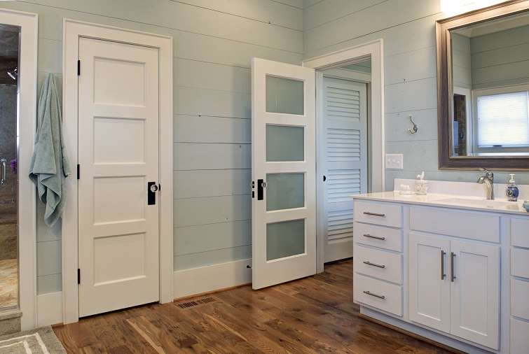 толщина — чем толще полотно, тем более прочной должна быть стена, на которую будет устанавливаться дверь. Для несущих стен подойдут цельные МДФ-двери, для тонких перегородок — облегчённые мазонитовые.