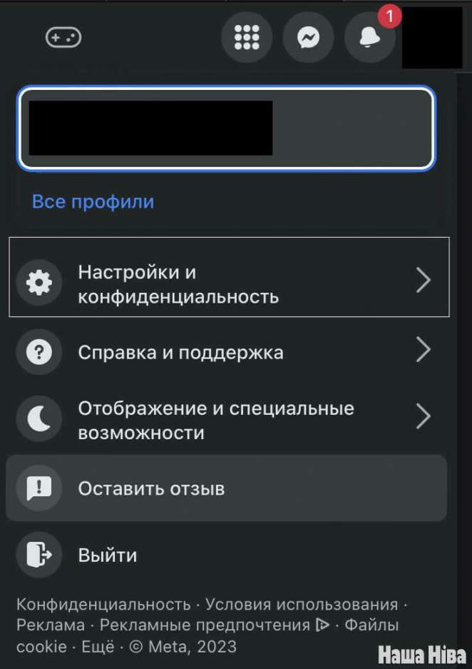 Нажмите на фото профиля в правом верхнем углу Facebook.