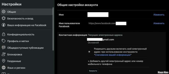 На вкладке «Общие» выберите «Контактная информация», нажмите «Изменить».