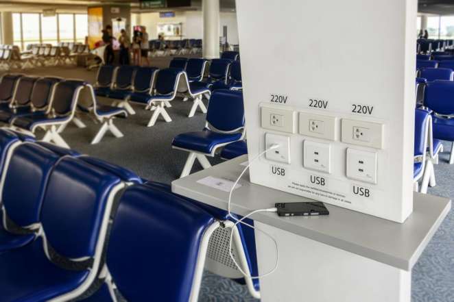 Речь идет не о розетках для блока питания, а именно о зарядных USB-разъемах, которые монтируются прямо в стену или стойку. Их обычно можно встретить в отелях, аэропортах и торговых центрах.