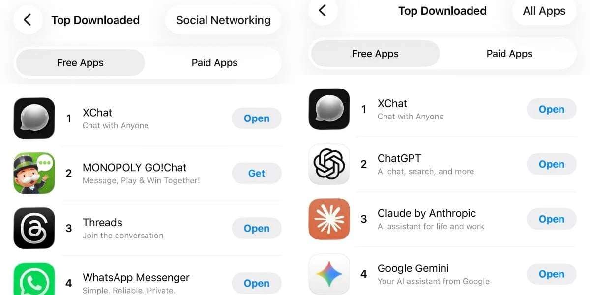 СМИ обратили внимание, что мессенджер Маска стремительно набирает популярность: приложение уже вышло на первое место в App Store сразу в двух категориях – среди бесплатных приложений и в разделе социальных сетей.