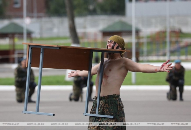 Возвращаясь к теме войны и потенциальных врагов Беларуси: в Витебске десантник удержал зубами школьную парту. То ли это все, что он вынес из школы, то ли грызет ДСП науки, то ли так делают десантники, когда их просят поработать головой — в любом случае, страна под надёжной защитой от вторжения школьных парт, а престиж нашей армии держат на высоте! (с)