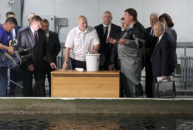 Лукашенко посетил форелевое хозяйство «Лохва» на Могилевщине. Планы по развитию рыбохозяйственной деятельности лучше всего описывает фотофакт оттуда, пишет «Салідарнасць»: