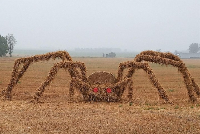 В агрогородке Кухчицы на Клецковщине на поле поставили соломенного паука!