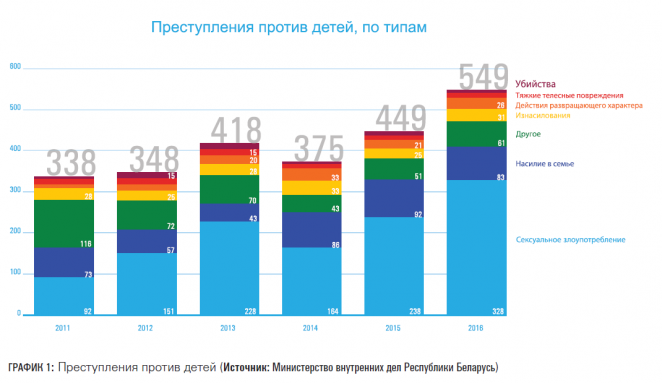 «Динамика преступлений против детей отражает рост их числа более чем на 60% с 2011 года. За это время показатель сексуальных злоупотребления вырос в три раза… В общей сложности доля преступлений сексуального характера в отношении детей среди всех преступлений против личности (в отношении детей) увеличилась с 38% в 2011-м до 70% в 2016-м».