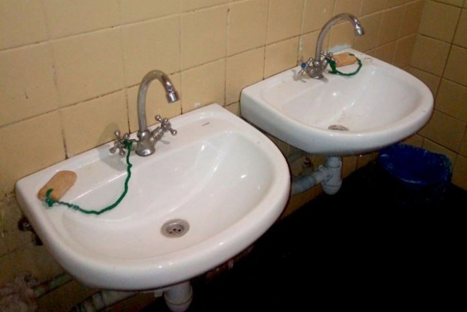 «Лучшей иллюстрации социально-экономического положения белорусов просто не найти, — пишет «Салідарнасць» об этом фото из Молодечно. — Кажется, в этой картинке все: и экономический расцвет предприятия, которое не может себе позволить даже хозяйственное мыло, и благосостояние работников, для которых этот серый мыльный кусок является предметом вожделения, и в целом общий уровень интеллекта, очевидно, явившийся причиной первых двух проблем». Правда, директор Завода порошковой металлургии, где находится туалет, заявил, что фото сделал провокатор и что он уволил бы того, кто привязал это мыло.